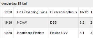 Pioniers prevailed 8-1 over Pickles UVV. Lars Huijer pitched eight innings for